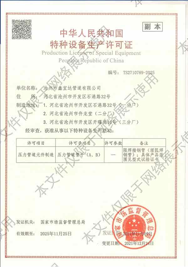 滄州市鑫宜達管道有限公司成立于2003年7月,坐落于滄州經濟開發區,占地面積40萬平方米,注冊資金1.81億元,是集螺旋鋼管生產、防腐加工以及無縫鋼管、卷板、帶鋼等品類鋼材經營銷售于一體的工貿型企業。公司現有員工400多人,其中,中高級技術職稱的人員達120余名。 滄州市鑫宜達管道有限公司擁有9條螺旋鋼管生產線和3PE防腐生產線,可生產直徑219--3640mm,壁厚5.5--28mm,最高鋼級X100的各種規格防腐螺旋鋼管...