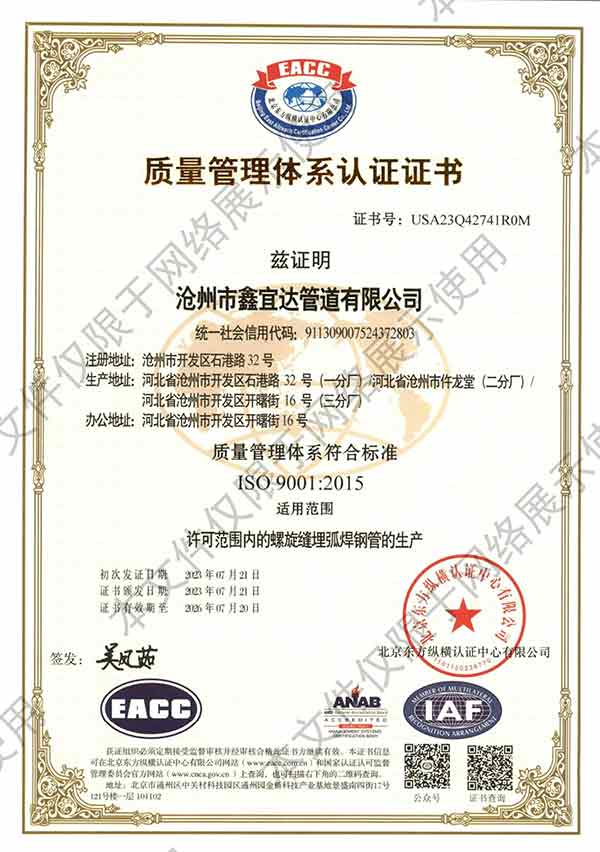 滄州市鑫宜達管道有限公司社會責任報告